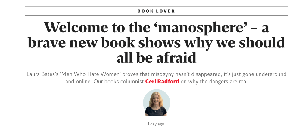 On Sunday 13 September 2020 Ceri Radford reviewed Laura Bates book ‘Men who Hate Women’ – you can find the review here. No surprise that they are both Cambridge English Literature graduates – the old girl network in progress.