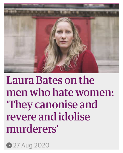 27th August. Laura Bates on the men who hate women. This, in Guardian that even published ‘Why I Hate Men’ by Julie Bindel. The article by Laura Bates is lazy piece of writing that seeks to conflate good-faith objections to aspects of feminism with the extremes of the incel movement.