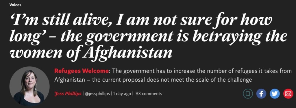 I suspect Jess Phillips its the sort of person Ali Mehraspand is referring to. At the moment, I wouldn’t like to be a human being of either sex in Afghanistan.