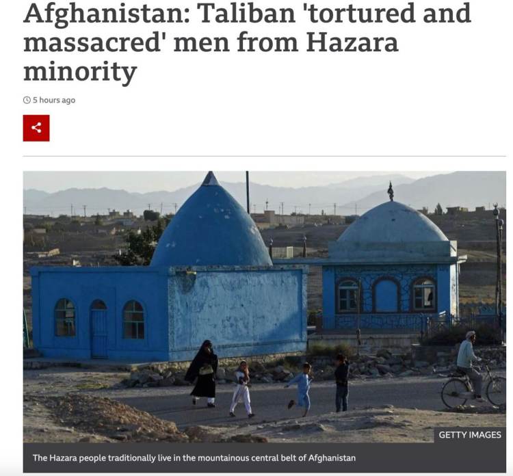 Predictably, Jess focussed purely on the plight of women and girls in Afghanistan. You might even think from her article that it was always going to be a ‘picnic’ for the boys. Sure enough, within 24 hours a different picture begins to emerge. A picture of marauding Taliban gangs rounding up, torturing and killing men from the Hazara minority. For example, nine Hazara men were killed between 4-6th July in the Malistan district. Similarly, in Mundarakht six men were killed and three were tortured. Click the image or click here to learn more.