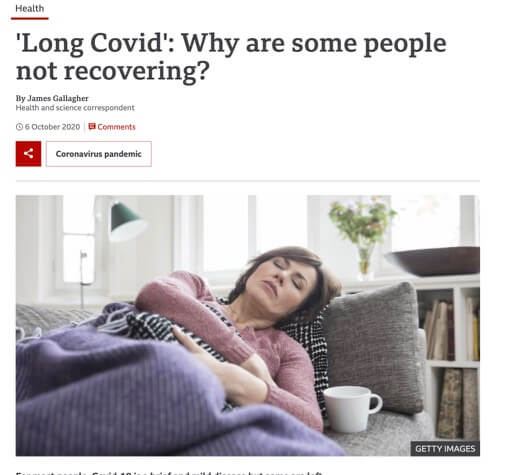 The BBC website 6th October 2020. ‘Why are some people not recovering’ again foregrounds young women.