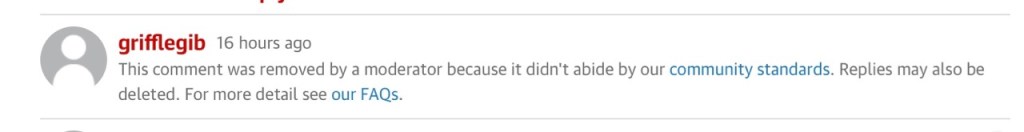 Grifflegib’s post lasted about 13 minutes before it was removed by a moderator because it did not abide by community standards.