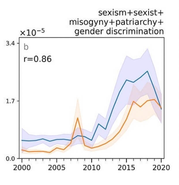Similarly, political scientist Matthew Goodwin writing in his Substack Column, The Great Awokening in The British Media, showed the same effect in the UK media, with a marked explosion in the use of feminist terms, including patriarchy, in UK newspapers since the year 2000. ‘The patriarchy’ seems to be more of a fashionable idea than a rationally formulated and properly researched construct.