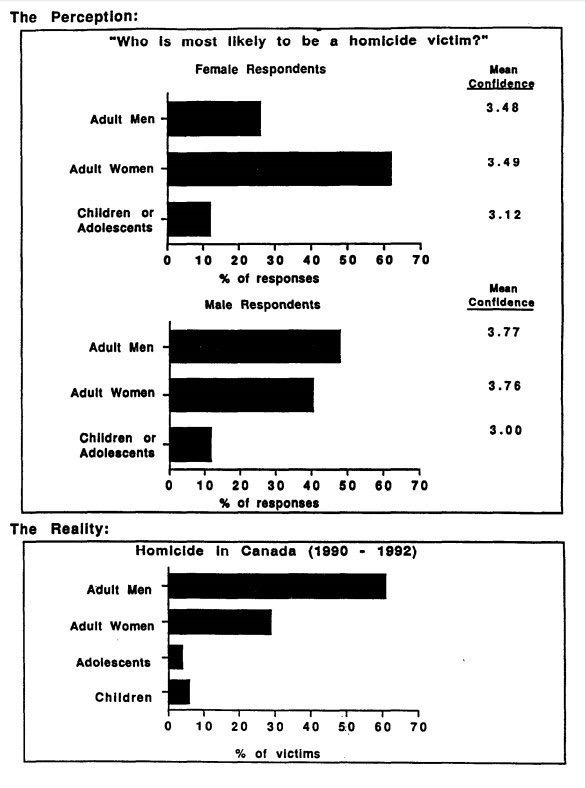 Returning to the subject, why do women feel less safe than men walking the streets? First, I assume it is true even though I have not seen adequately powered studies comparing women’s subjective sense of safety to that of men. It seems entirely plausible*.