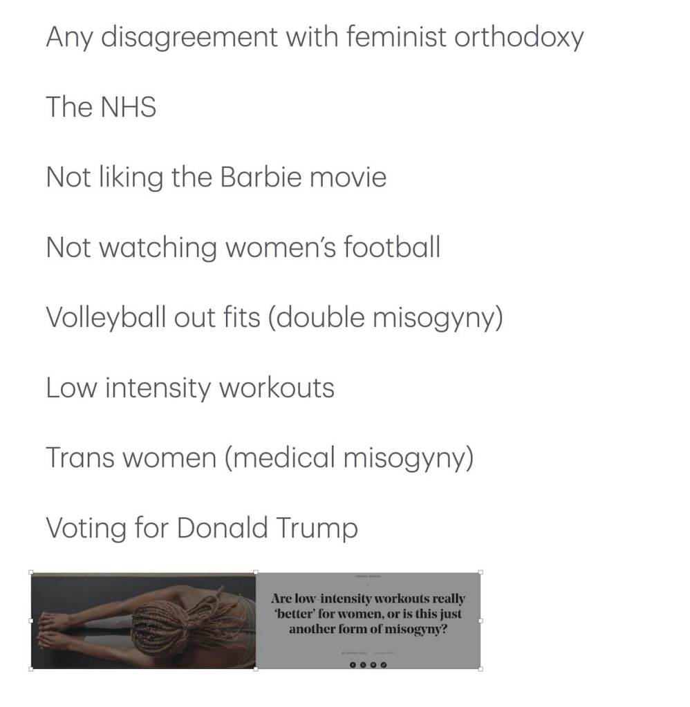 These are not isolated examples, the list of things described as misogynist in mainstream media keeps growing and has included,
